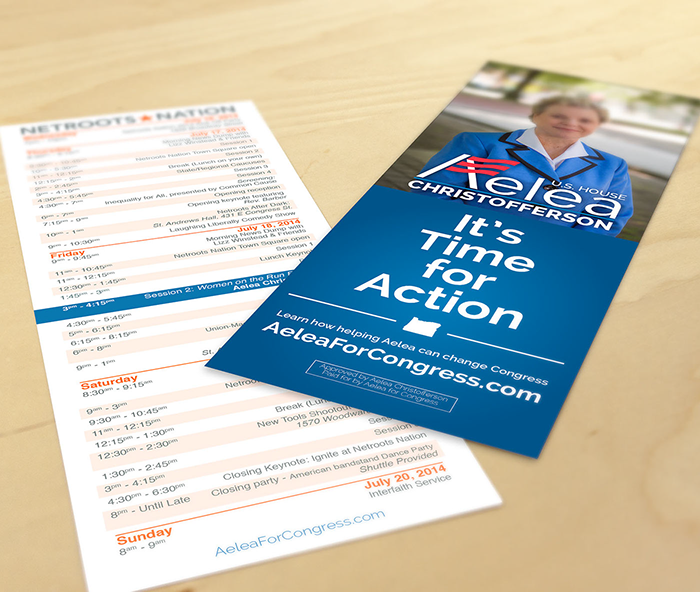Speaking at the Netroots Nation conference, Aelea Christofferson wanted a literature piece that would both highlight her campaign and help prospective listeners to find her keynote at the event.