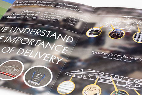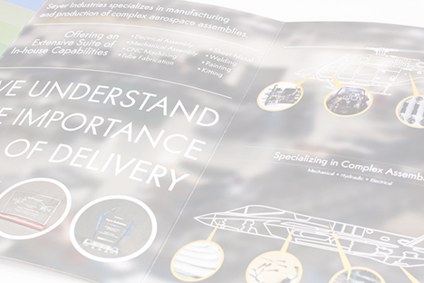 Specializing in a vast industry in the manufacture of parts and support equipment for aircraft and watercraft for both commercial and military, Seyer needed a brochure that could change information quickly based on their client's needs.