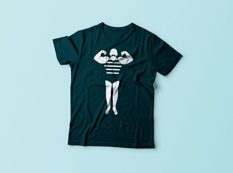 A simple teeshirt design of a vintage "Strongman" character.